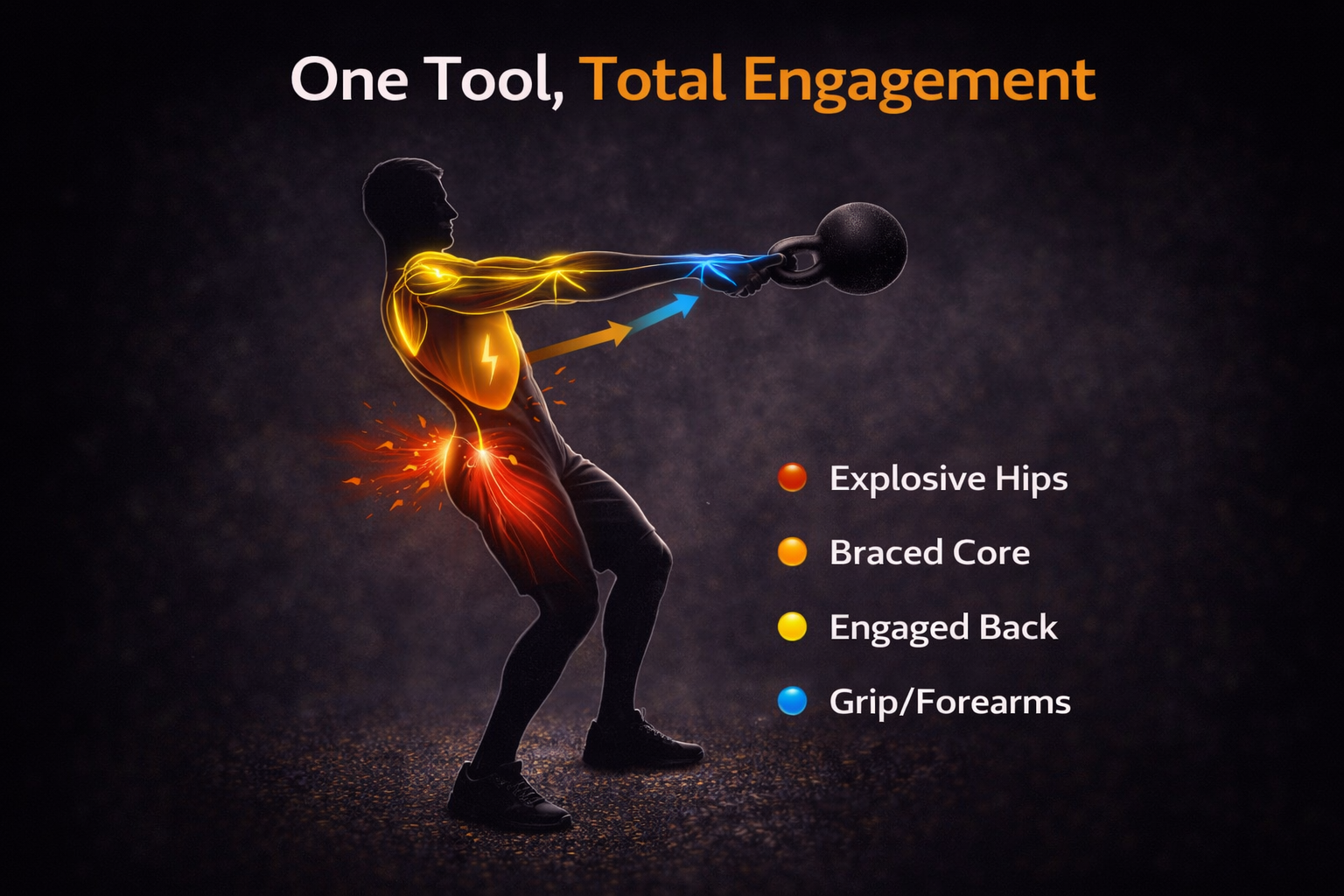 - Heavy kettlebell training is not just about arms or legs—engage your full body to generate power.