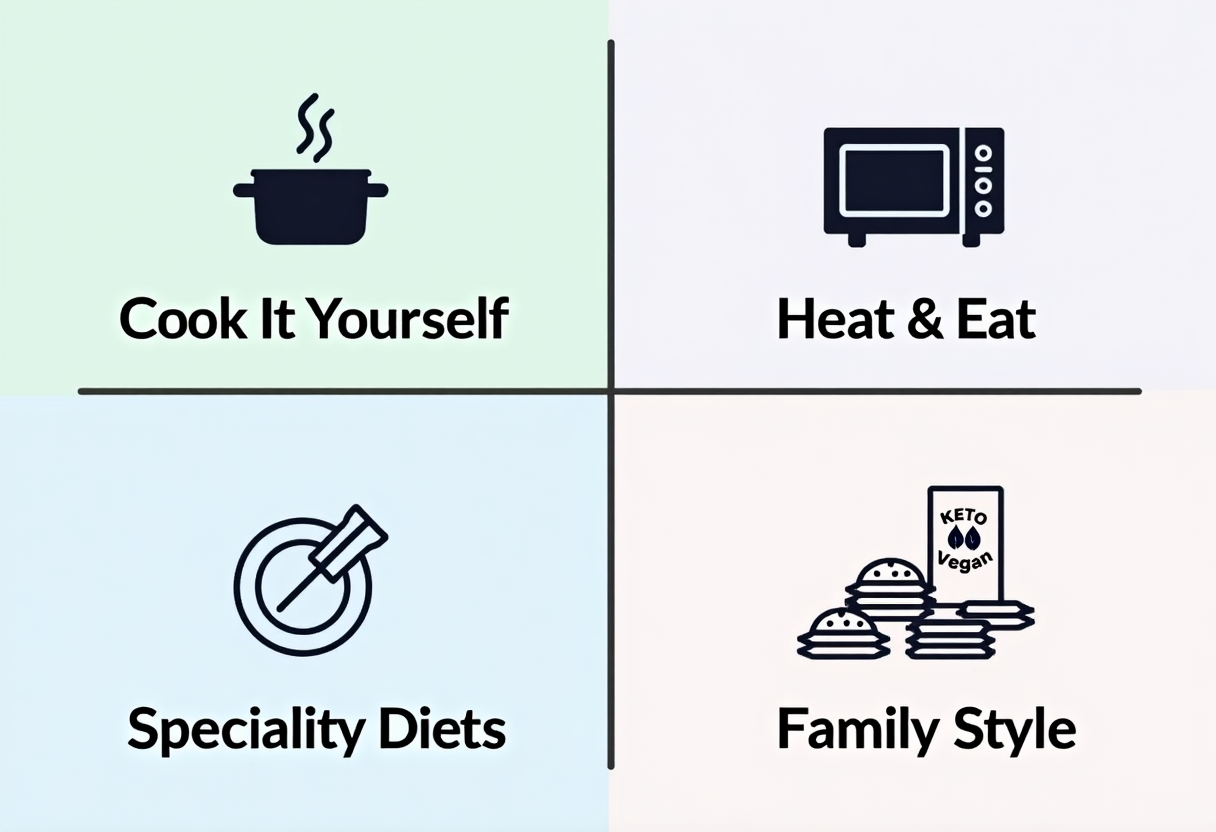 | Popular Brands | HelloFresh, Blue Apron | Freshly, Factor | Green Chef, Trifecta | Home Chef, EveryPlate |